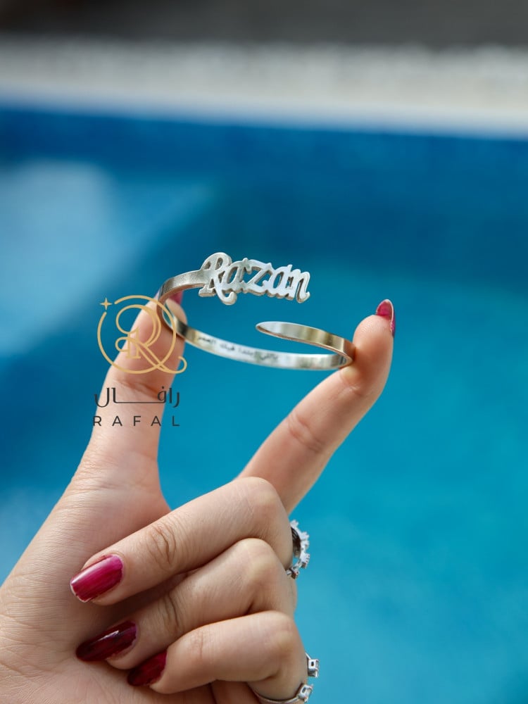 من رافال أجمل هدية مصنوعة بحب اسوارة بالاسم أو العبارة أو التاريخ بحفر ليزر أحدث التقنيات ومتوفرة بطلاء ذهبي أو فضي مع ضمان سنة على اللون ومقاس مرن