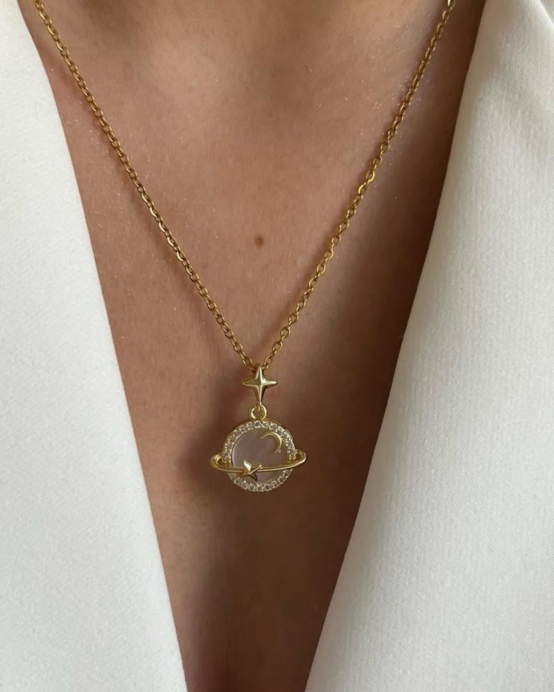 سلسال أنيق بتصميم كوكب لامع مرصّع بتفاصيل دقيقة تضيف لمسة عصرية فريدة لإطلالتك.