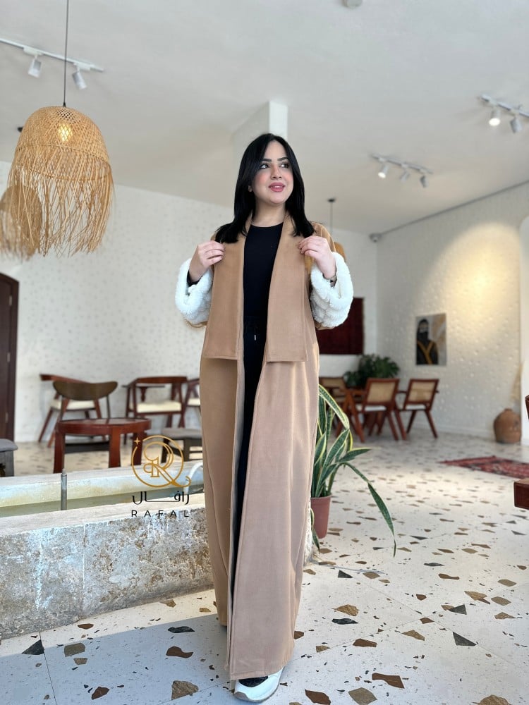 فروة شتوية جملي مفتوحة صممت بطريقة عصرية.