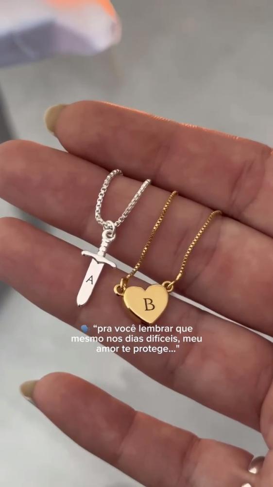 يتكون البكج من سلسالين بتصميم قلب وسيف أنيق.