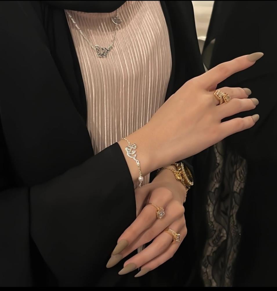 بكج مميزه جدا بتصميم الحرف العربي ، مطلي بطلاء ذهب مع ضمان سنتين على اللون وطبعا مع علبة مخصصة وكيس.