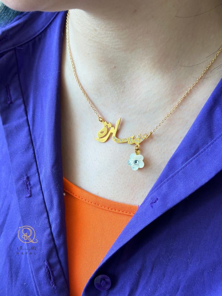 اجعل لمستك الخاصة تتألق مع سلسال بالاسم مرصع زركون مع وردة من متجر رافال! هذا السلسال ليس مجرد قطعة مجوهرات، بل هو تعبير عن ذوقك الرفيع وشخصيتك الفريدة. يمكنك تخصيص أي اسم أو كلمة تعكس هويتك، سواء بالعربية أو الإنجليزية، مما يجعله قطعة فريدة من نوعها، تمامًا مثلك.