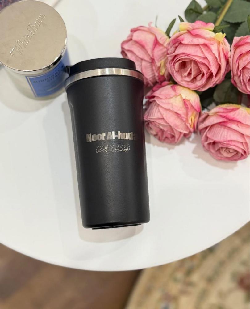مق أنيق بتصميم فاخر مطلي باللون الأسود غير اللامع، مزين بنقش الاسم والعبارة التي تختارها بأسلوب محفور يدوم طويلاً دون أن يتلاشى.