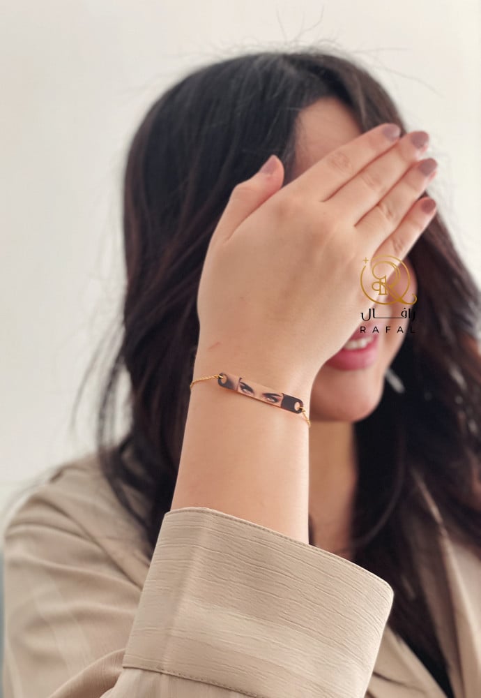 اسواره بشكل مميز جدا بتصميم الفريد برسمة صورة العيون و كتابة عباره باللون الفضي مع ضمان سنتين على اللون بسمك 0.7 مم وطبعا مع علبة مخصصة وكيس