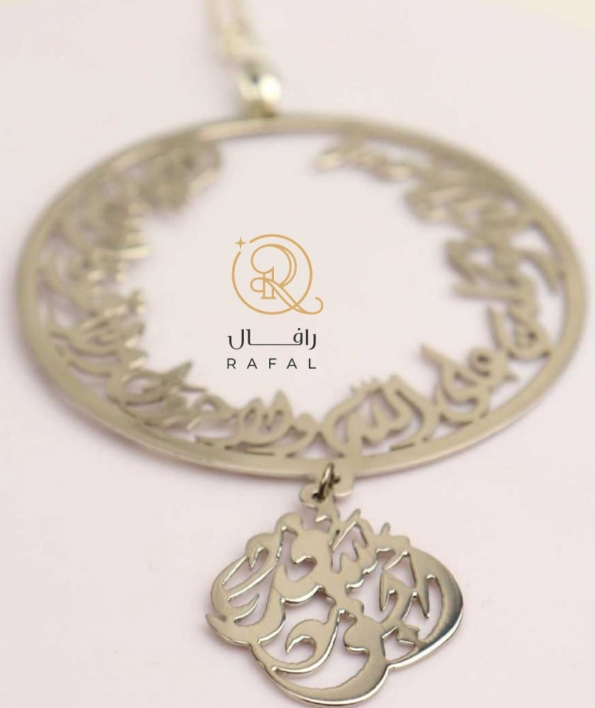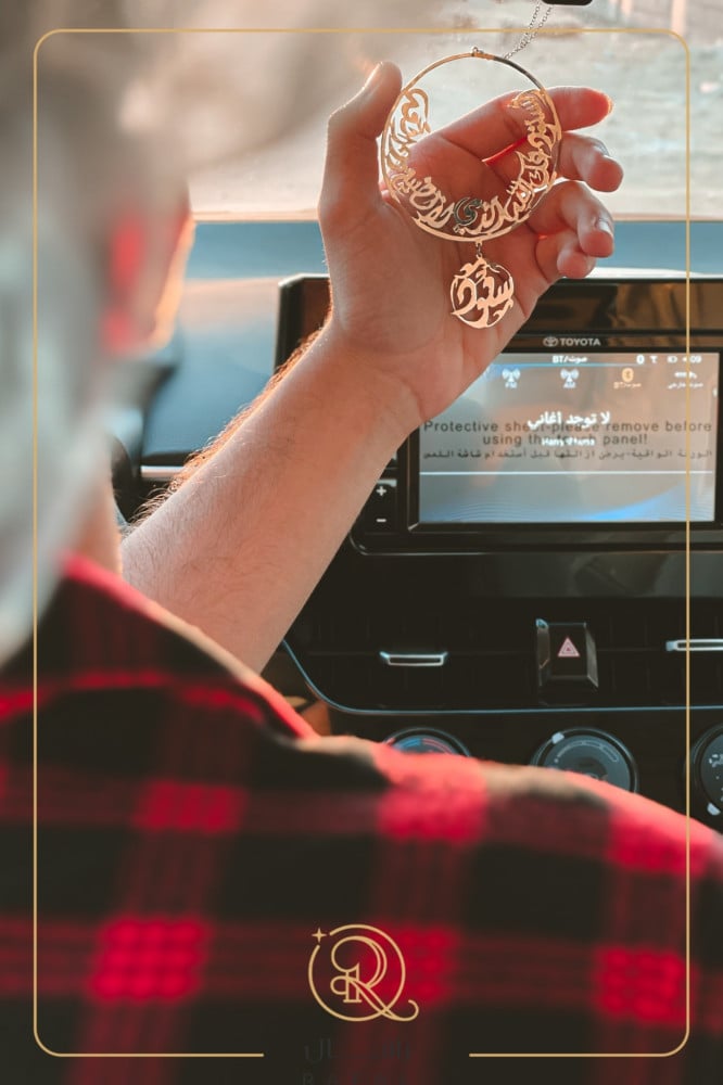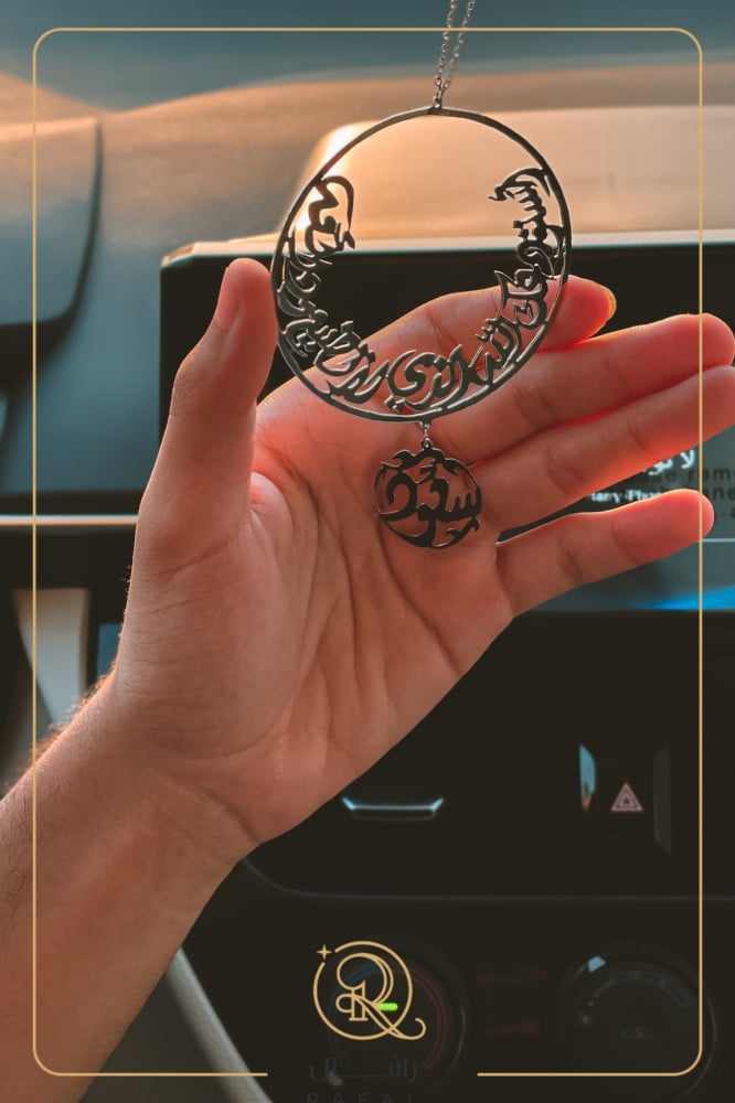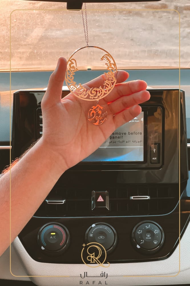 تعليقه سياره بالاسم حسب الطلب ودعاء بتصميم دائري بطلاء ذهب أو فضة أصلي. التعليقة تأتي مع كيس وعلبة من رافال. تجدون لدينا أفخم تعليقات سيارة وهدايا رجالية.