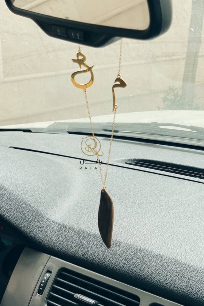 قطعة فنية أخرى من تعليقات سيارة من رافال بتصميم القلب البشري بكل دقة باللون الذهبي أو الفضي مع الحرف بداخله وطبعا كسرة عود لتكتمل الفخامة والأجواء الساحرة حتى تهديها لمن تحب أو تحبين.