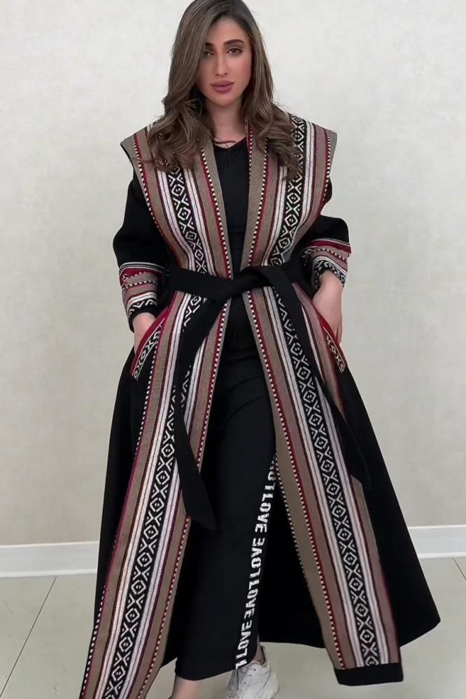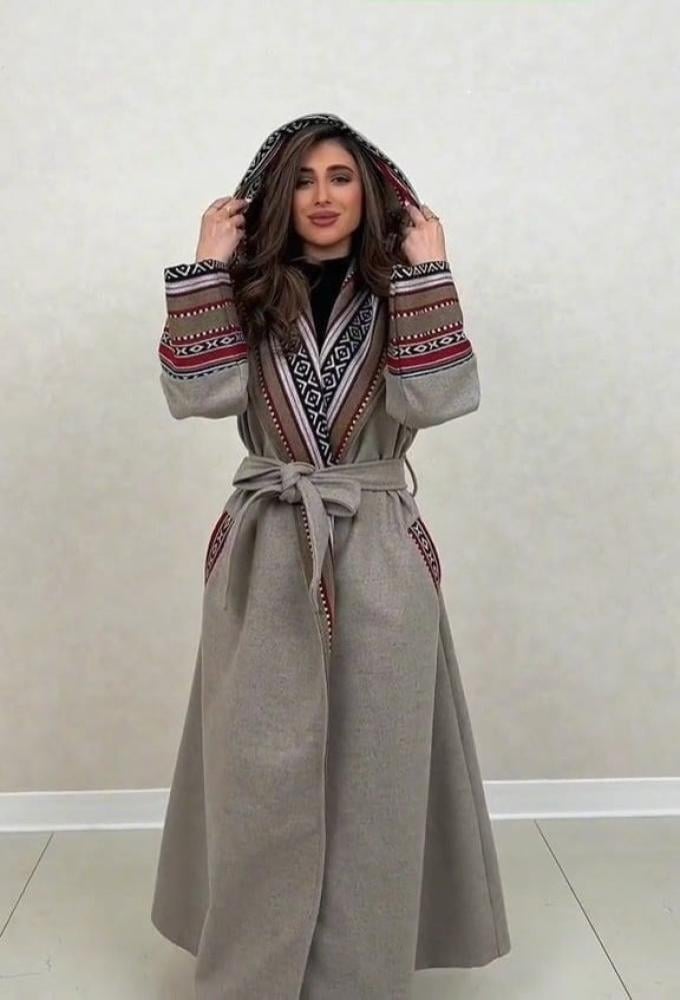 استمتعي بالدفء والأناقة في هذا البشت الشتوي المصنوع من جوخ عالي الجودة، والمطرز بنقوش السدو التراثية التي تعكس الفخامة العربية. يأتي مع شال أنيق ليمنحك دفئًا مضاعفًا وأناقة متكاملة خلال الأيام الباردة.