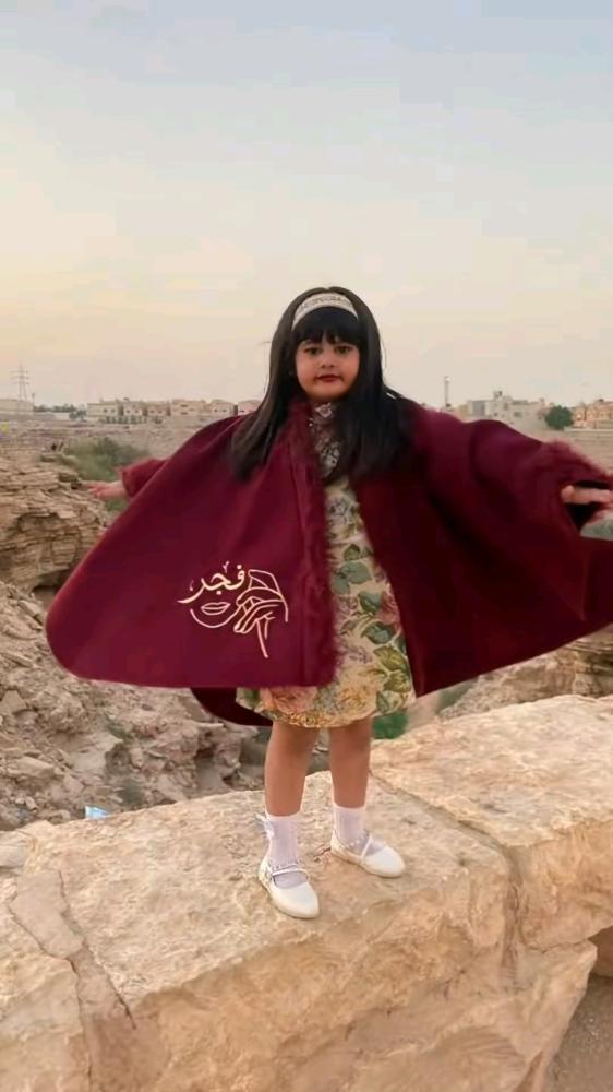 شال شتوي للأطفال بلون عنابي فاخرقصير، أنيق، ويعطي إيحاء بالفخامة والدفء الشتوي.ولو حاب نسخة أقصر للعرض في الإعلانات:شال فخم شتوي للأطفال