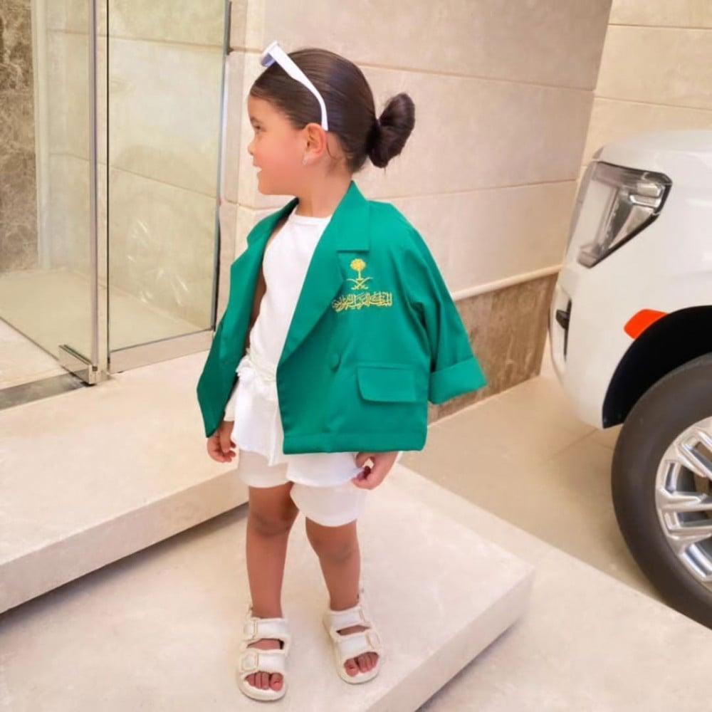 أناقة أطفالكم في اليوم الوطني مسؤولية متجر رافال مع جاكيت اليوم الوطني المطعم بشعار المملكة "سيفين ونخلة " وبلون مميزة وعصري ومصنوع من أجود أنواع الأقمشة ليرتاح فيها طفلك ويمكن إضافة الاسم
