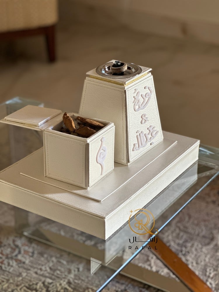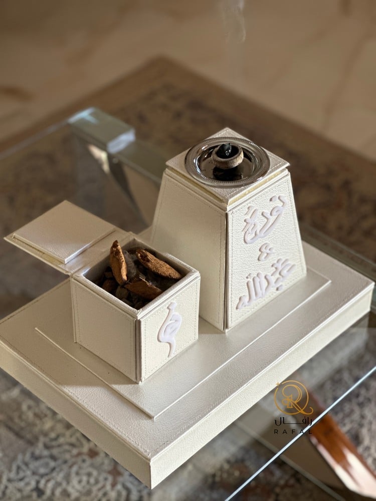 مبخره جلد فاخره بالاسم والحروف حسب الطلب. تفاصيل المنتج. كتابة حسب الطلب. اكرلاك ملبس بجلد. مصمم حسب الطلب.