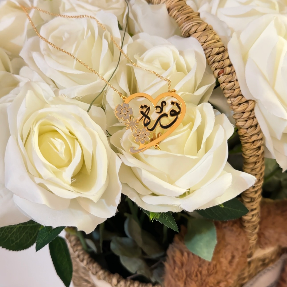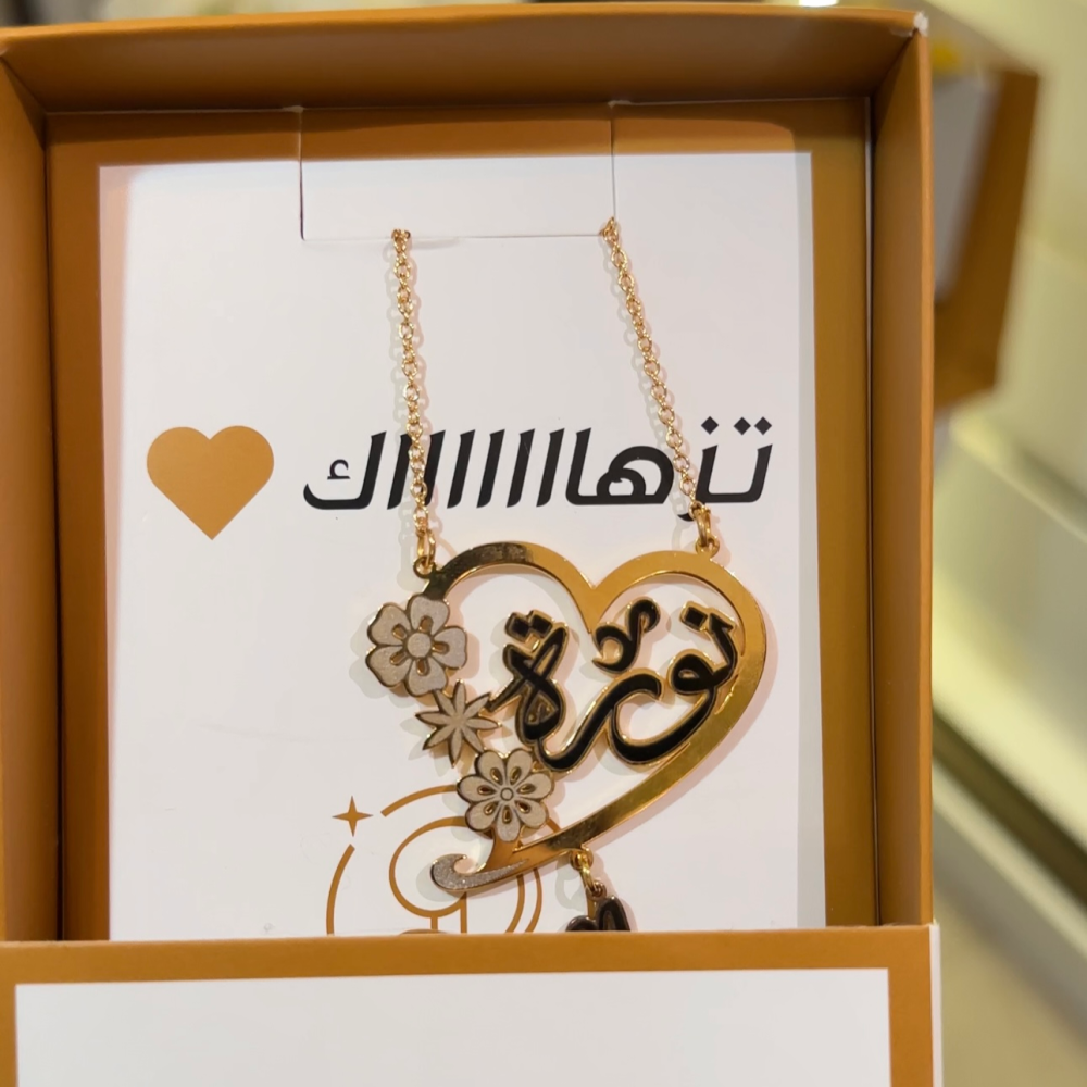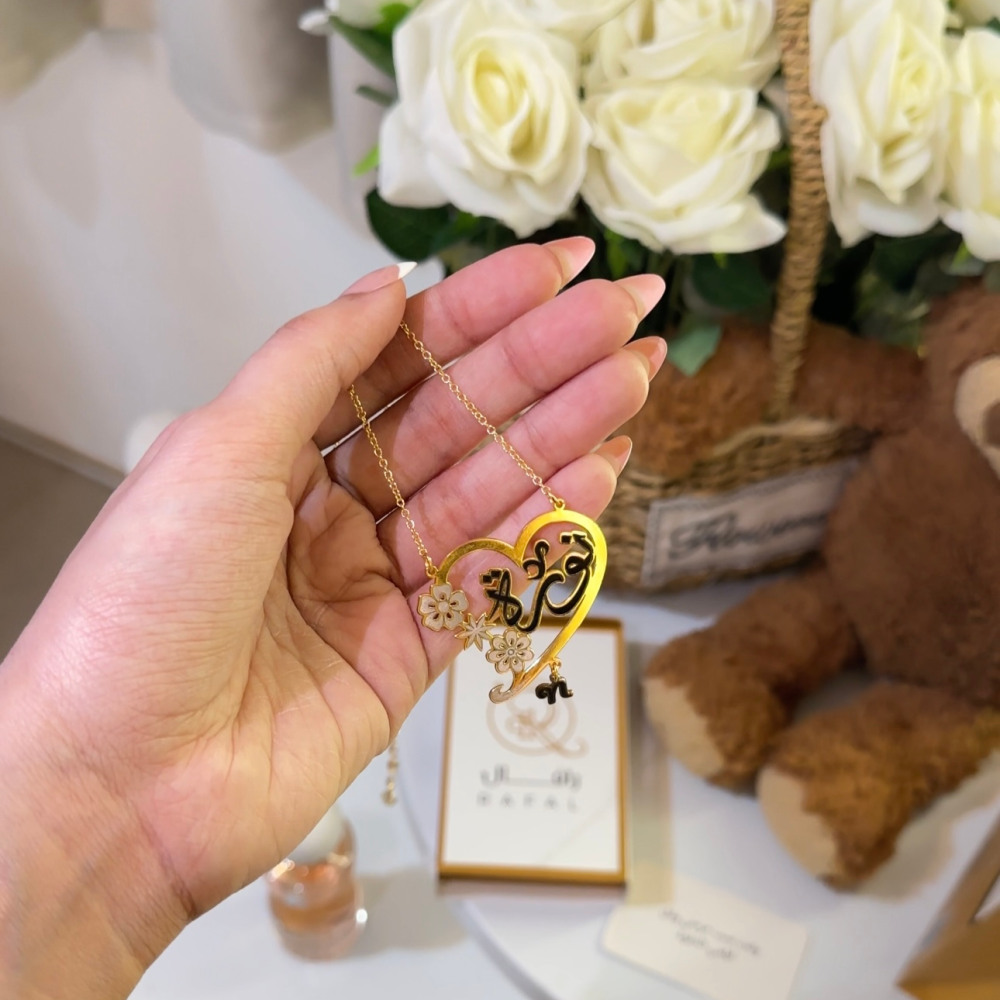 سلسال القلب بالاسم و الحرف بالمينا الأسود - تصميم يخلد ذكراكما💞